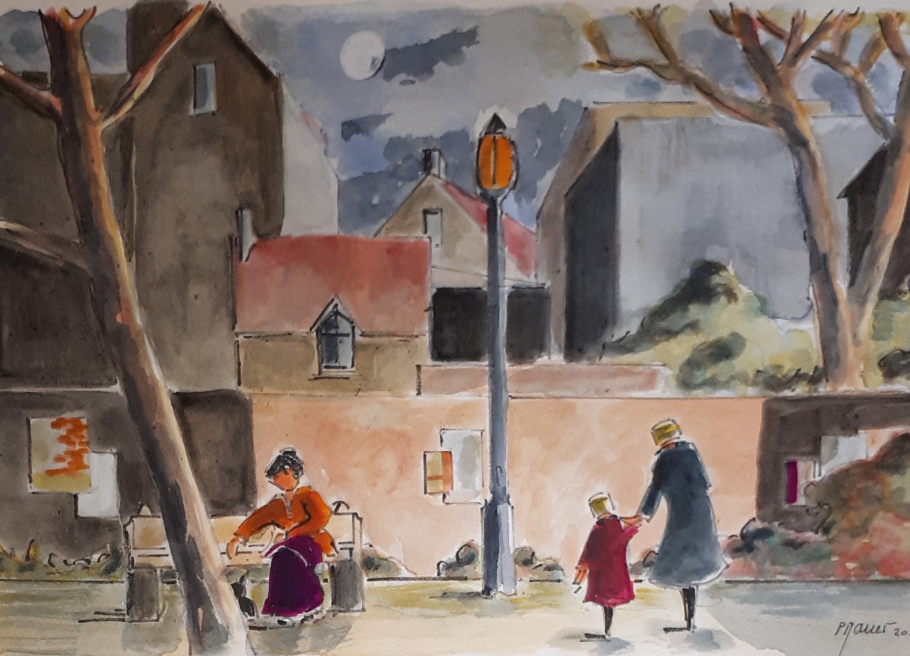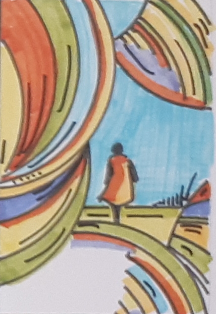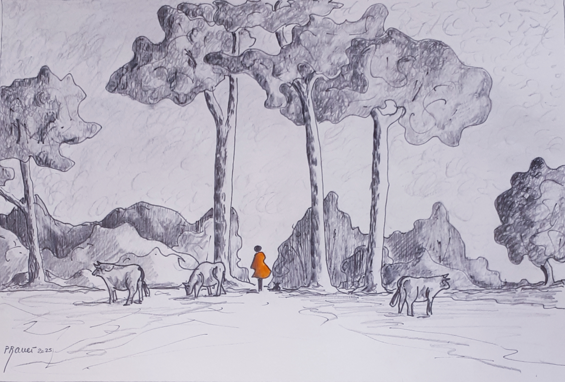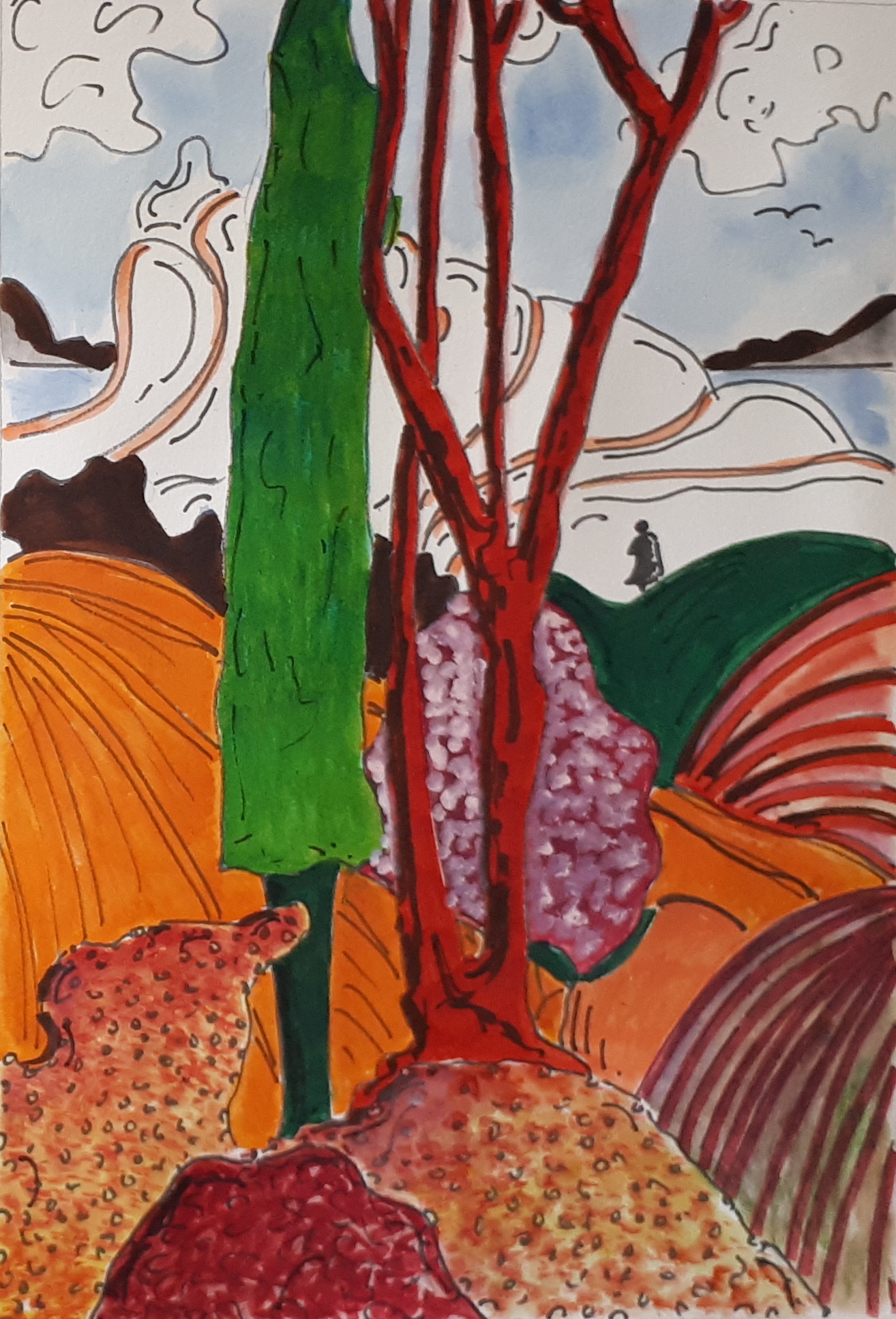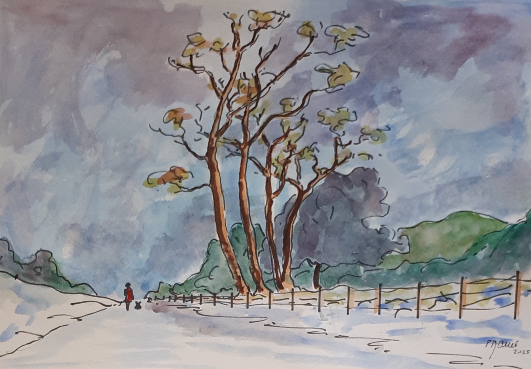 Seule en forêt 01 / Aquarelle et encre / 30 x 50 |